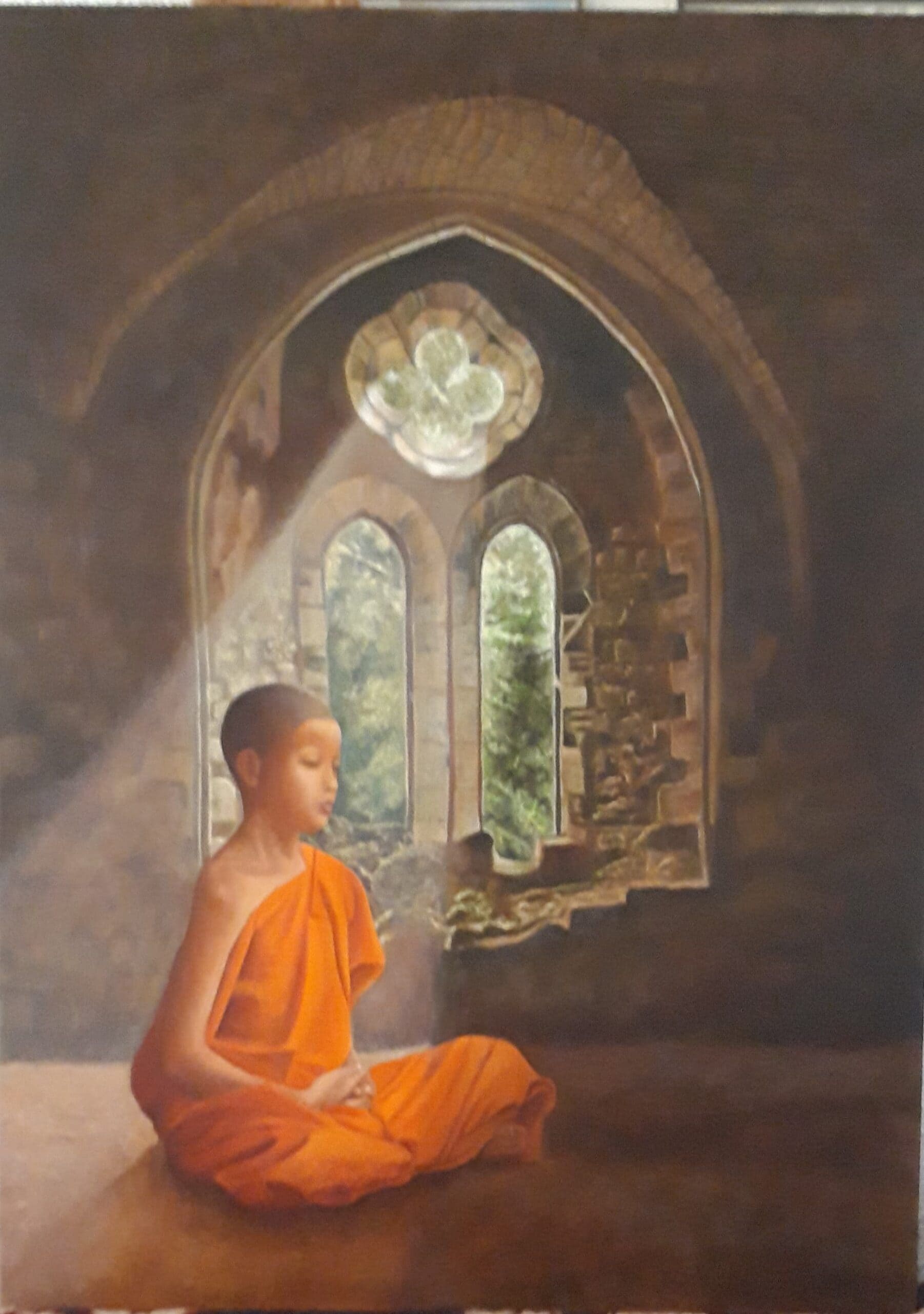 Als het hele werk naar tevredenheid op het paneel staat, start de kleurfase met transparante olieverflagen, waarin zij met dekkende olieverf gaat oplichten. Dit proces herhaalt zich zo vaak als zij dat nodig vindt. Het is een arbeidsintensieve techniek, maar wel zo heerlijk om te doen. Het werk steeds te zien veranderen en te verdiepen. En dan, als het werk klaar is, ingelijst en goed uitgelicht aan de muur hangt, zie je pas het echte effect van deze oude techniek. Door de diverse lagen lijkt het werk driedimensionaal. Waar de creatieve stroom Marja heen voert, maakt niet uit. Het voelt als ontspannen, bij haarzelf thuiskomen en is haar passie.